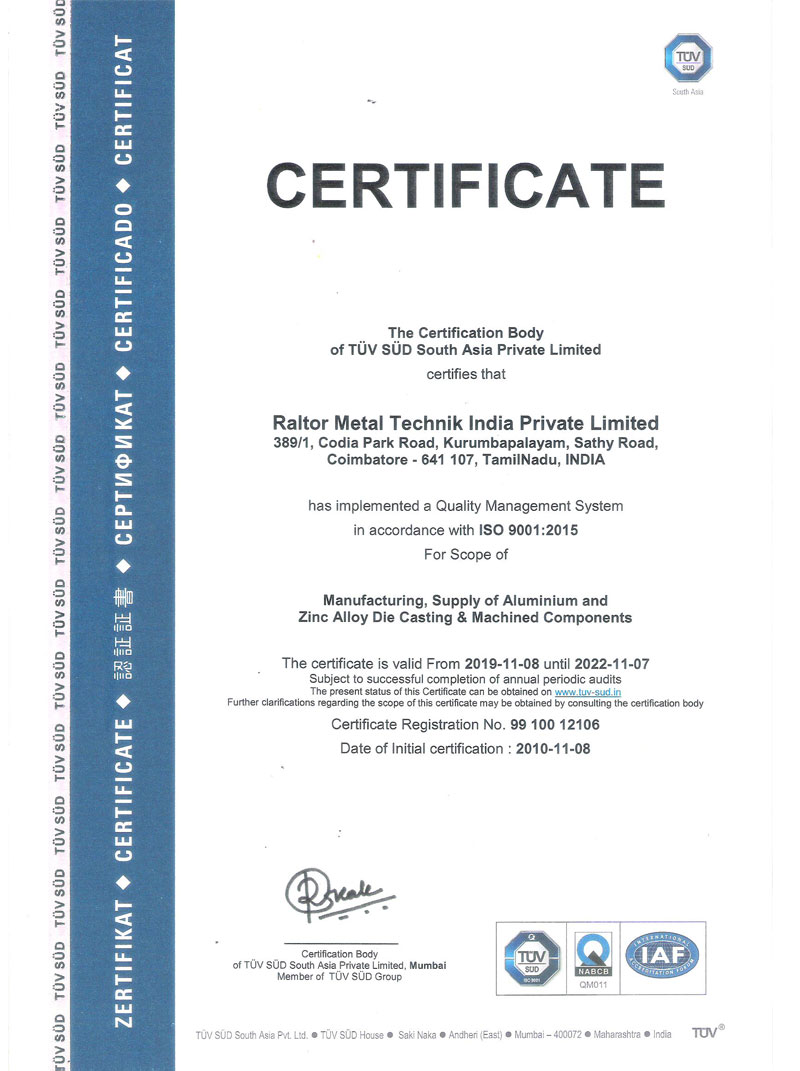 Raltor Metaltechnik India Private Limited was incorporated in the year 2006 with the mission to offer high quality products and services that exceed client’s expectations. From inception our consistent efforts towards manufacturing products of top notch quality has made us to establish our self as one of the fastest growing manufacturer and supplier of Aluminium and Zinc Pressure Die Casting ,CNC /VMC Machining and Sub-Assemblies.